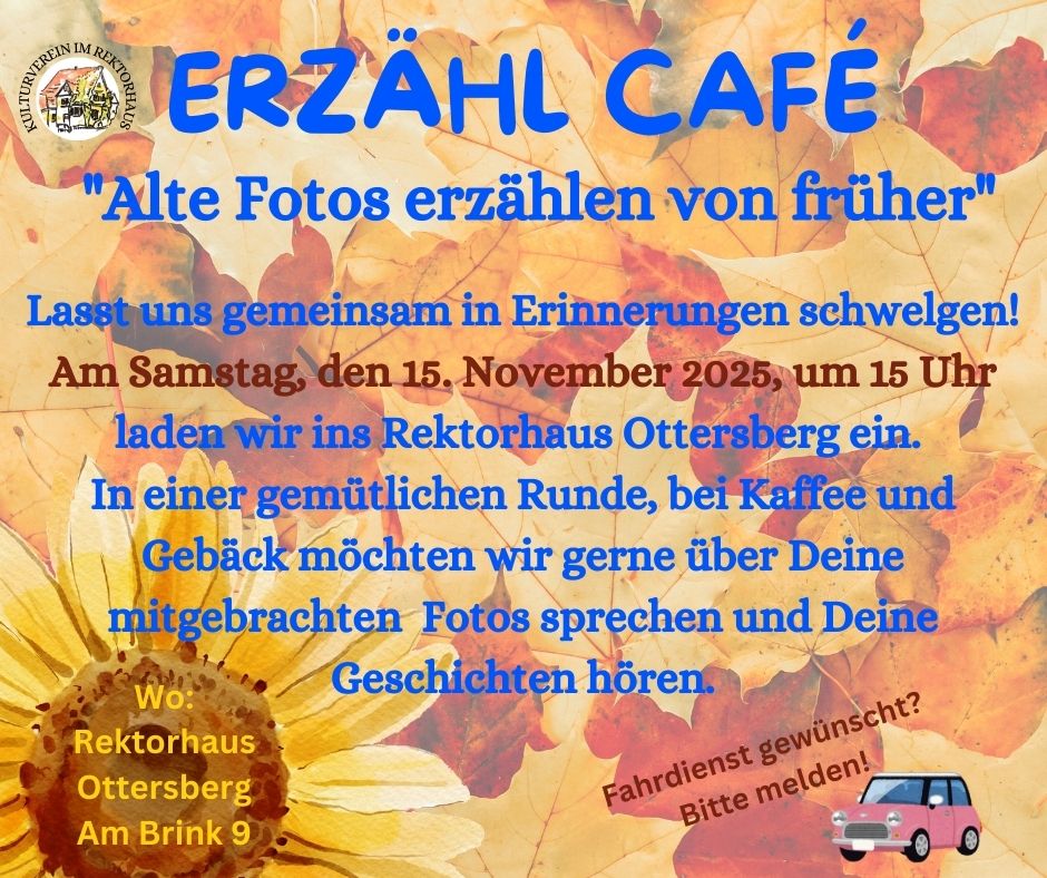 Am 15. November 2025 fand im Rektorhaus in Ottersberg ein ganz besonderer Nachmittag statt. Das Erzählcafé des Ottersberger Kulturvereins bot den Bürgerinnen und Bürgern die ...
